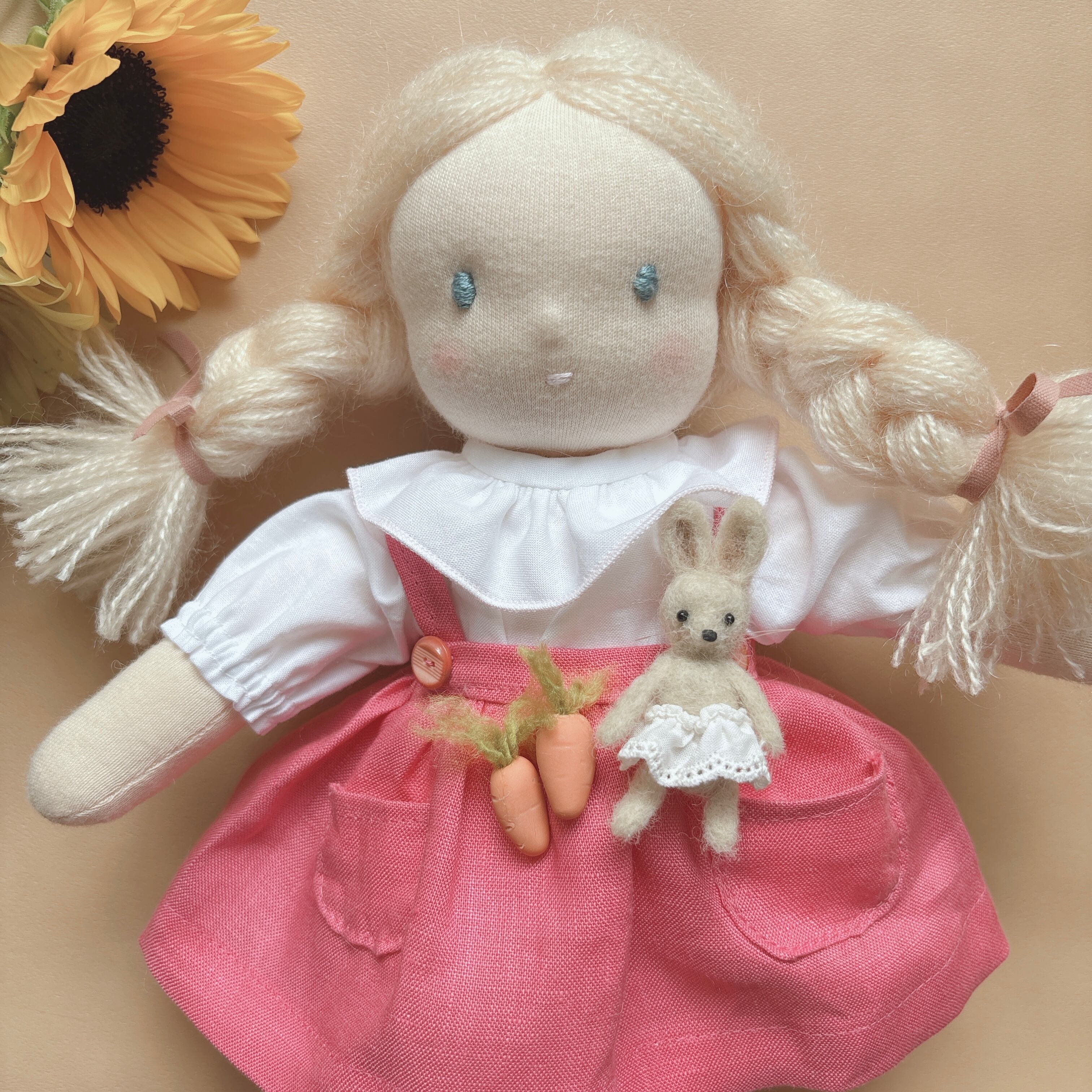 小さな羊毛のうさぎをポケットにいれました。